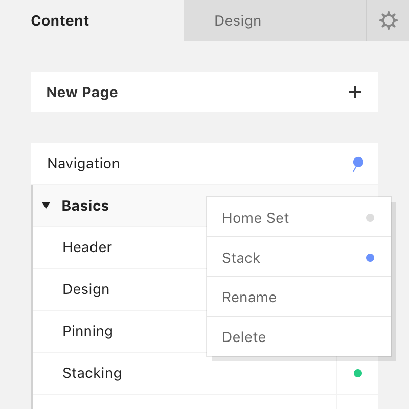 When you Stack pages, they’re displayed as a continuously scrolling vertical feed. You can Stack individual Sets of pages, or your entire site.